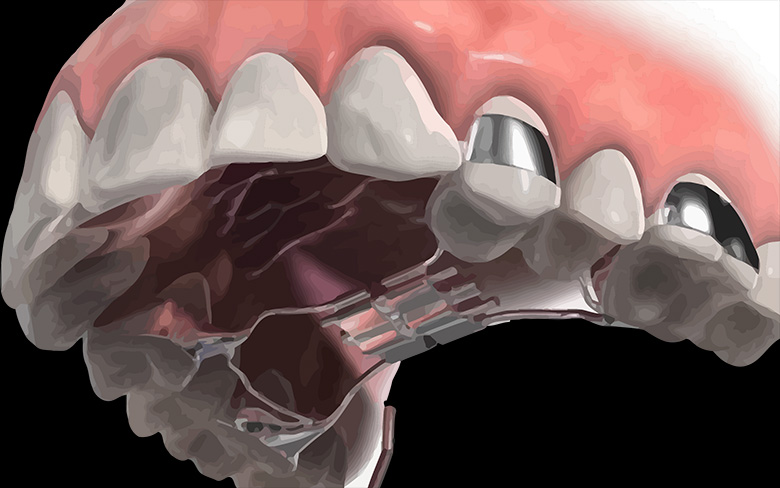The space between the sections can be gradually moved apart to encourage more bone to grow between those halves, making the jaw wider.